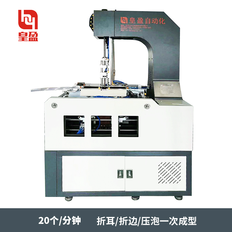 四角贴角机所用卡纸厚度在250g以上,标准型四角贴角机成品盒尺寸长宽高的范围可做到450*450*150mm--40*40*10mm,定制型的四角贴角机可做到长宽高可做到25*40*8mm,东莞皇盈四角贴角机可做三面开口盒,斜边盒,单面开口盒,开天窗盒等各类异形盒,速度在115--120个/分钟,效率高,速度快,四角贴角机的整机功率在220V/50Hz,2.2KW,气源要求0.6MPa,四角贴角机的整机尺寸长宽高在1.8*1.2*1.…